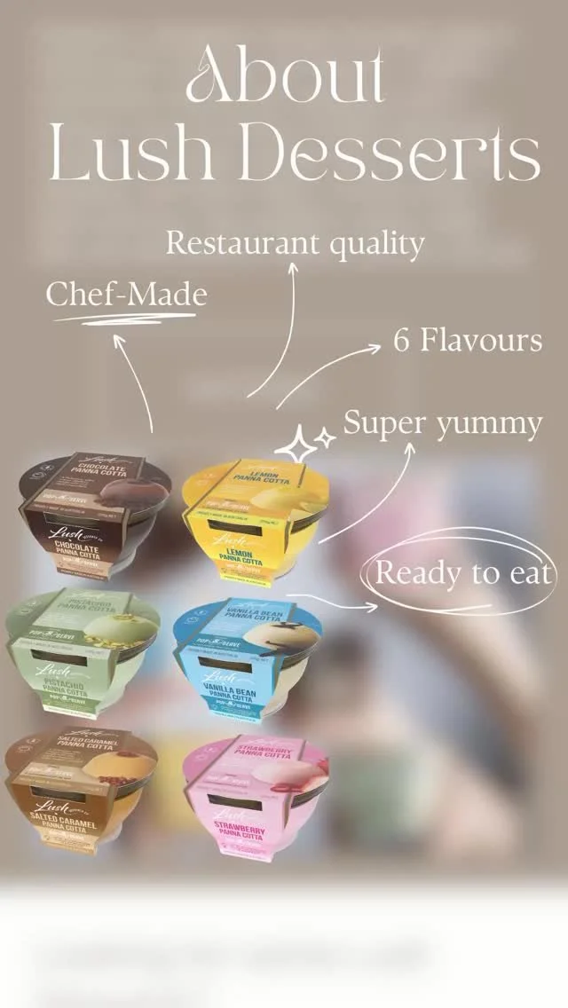 Indulgence, reimagined. Discover the latest range of velvety panna cottas by Lush Desserts - crafted in small batches with premium ingredients and no shortcuts. From the richness of salted caramel and chocolate to the bright, delicate notes of lemon and strawberry, each flavour offers a moment of pure, spoon-soft luxury. Also available in classic vanilla bean and nutty pistachio. Dessert, done the Lush way.